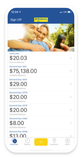 O depósito total será disponibilizado no próximo dia útil após a data de realização do depósito, se realizado antes do horário limite. O horário limite do banco é 16:00h, horário do Leste. Depósitos realizados em finais de semana, feriados federais ou após o horário de encerramento das 16:00h serão processados no dia útil seguinte. Depósitos pelo aplicativo somente estão disponíveis em celulares iPhone e Android com a funcionalidade de captura de imagem. Tarifas de dados e de mensagens móveis poderão ser cobradas. Fale com um representante do BB Americas Bank e/ou consulte os Termos e Condições de Serviços do Aplicativo Móvel do BB Americas Bank para mais informações.