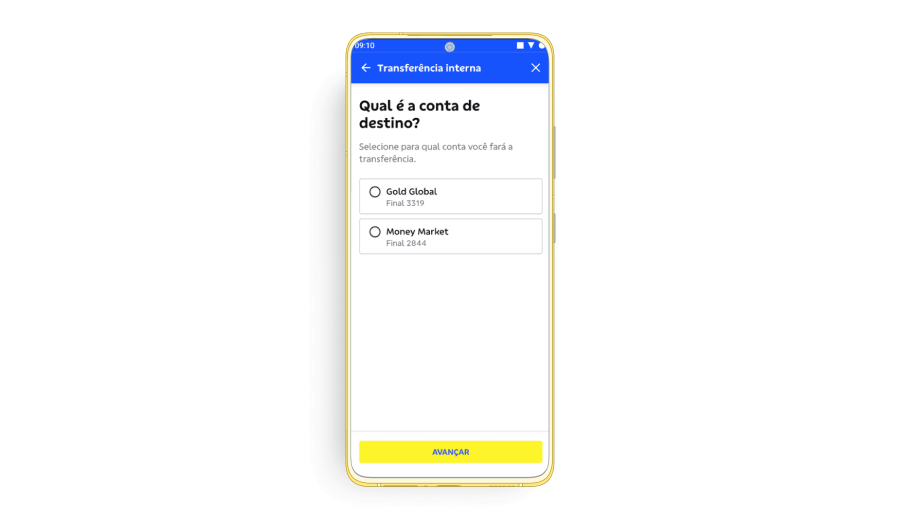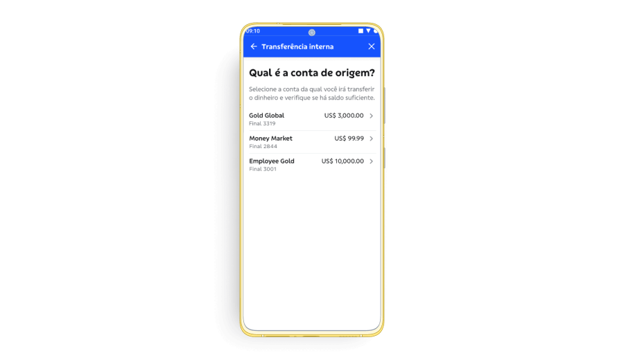 3. Selecione a conta origem da qual você irá transferir o dinheiro.