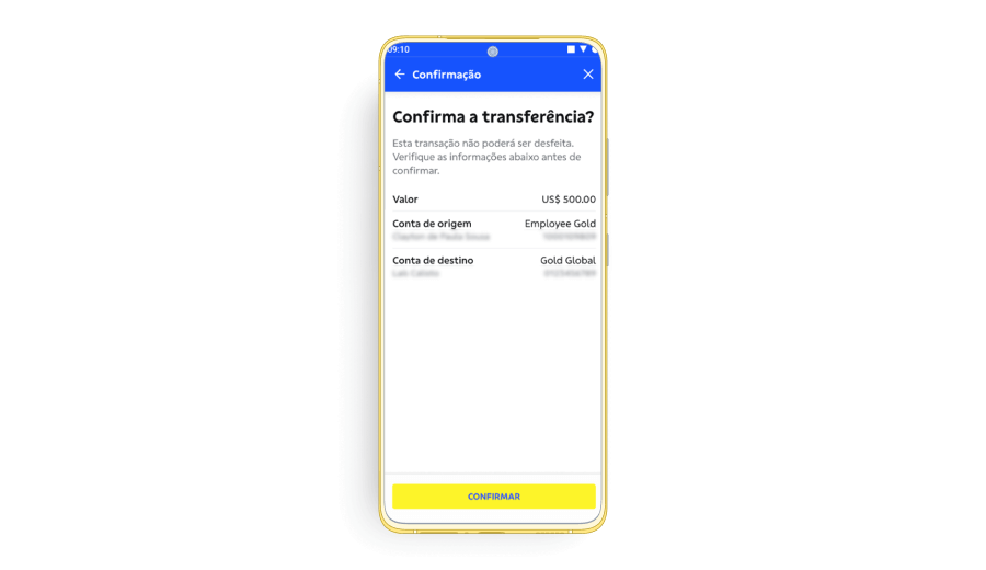 6. Confira as informações preenchidas e confirme o envio da transferência.