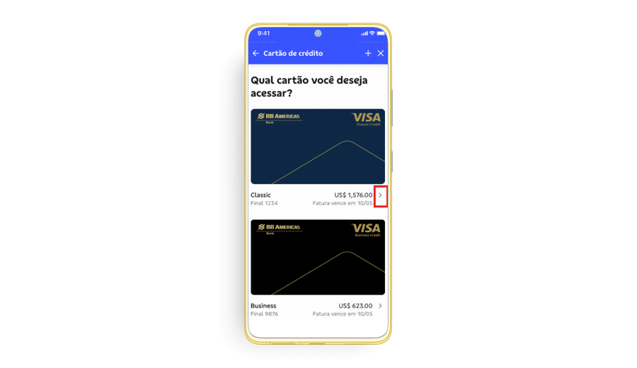 i. Atenção: Se você tiver apenas um cartão de crédito, essa tela de seleção não irá aparecer. Você já visualizará a tela de detalhamento do seu cartão (passo 4).