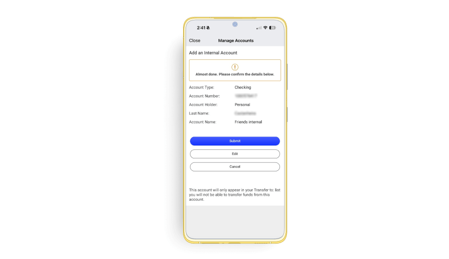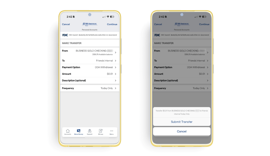 Para enviar dinheiro para outros titulares de contas no BB Americas Bank, o beneficiário deve possuir um usuário (Username) ativo em nosso Online Banking. Antes de iniciar a transferência, obtenha o número da conta do beneficiário que deverá conter 10 dígitos e o sobrenome do beneficiário para o qual deseja enviar dinheiro.