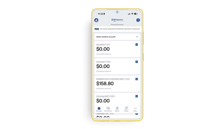 Para contas de amigos e familiares no BB Americas Bank.