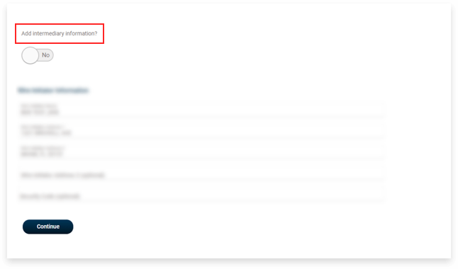 8. Os campos do Wire Initiator Information aparecerão já preenchidos. Confira as informações e clique em Continue.