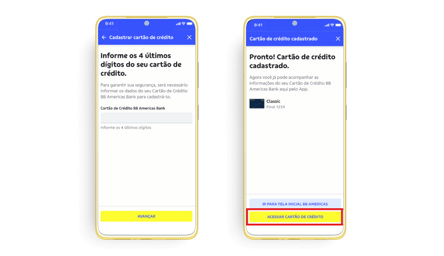 i. Enter the last 4 digits of your BB Americas Bank Credit Card and click on “Avançar”. ii. Click on “Acessar cartão de crédito”.