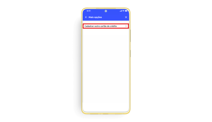 5. Click on “Cadastrar outro cartão de crédito”.