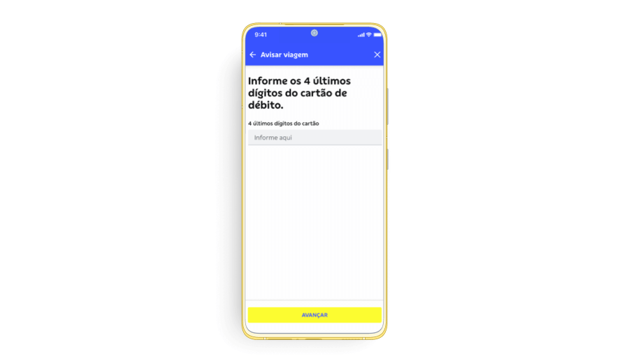 3. Enter the last 4 digits of the debit card you wish to place a travel notice and click on “Avançar”.