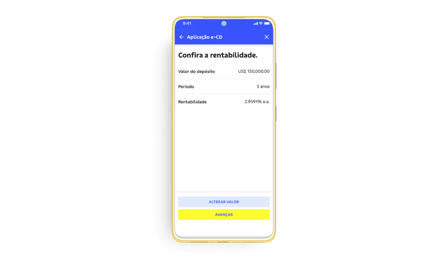 7. Inform the amount of the initial deposit to open the e-CD Account and click on “Avançar”.