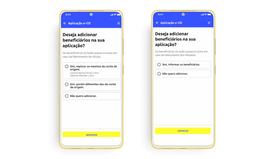 iii. “Não quero adicionar”: By selecting this option, the e-CD Account will not have any beneficiaries.