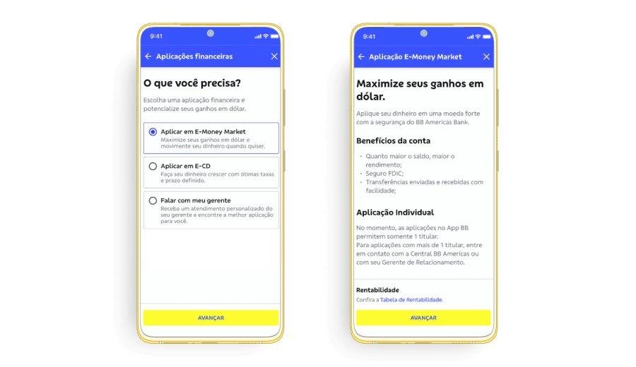 Home | Saiba como | How to Request e-Money Market in the BB S.A. App