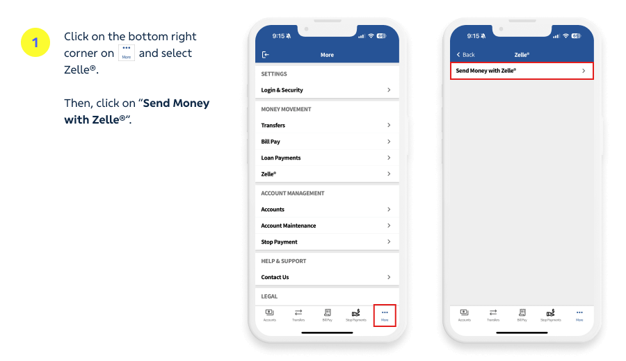 ⁴Zelle® is available for U.S. personal checking account. Your eligible U.S. personal checking account must be active and enabled for ACH transactions and Online Banking transfers.