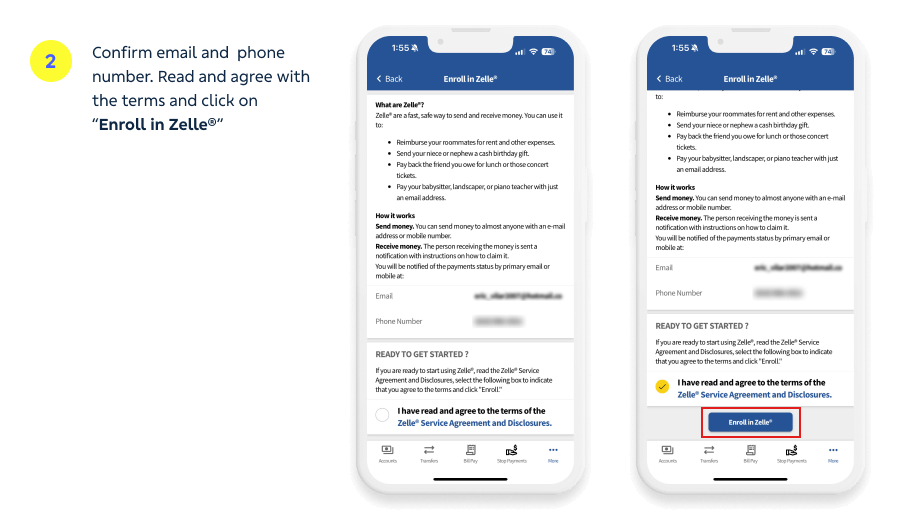 Each email address and U.S. mobile number can only be registered with Zelle® at one U.S. bank.