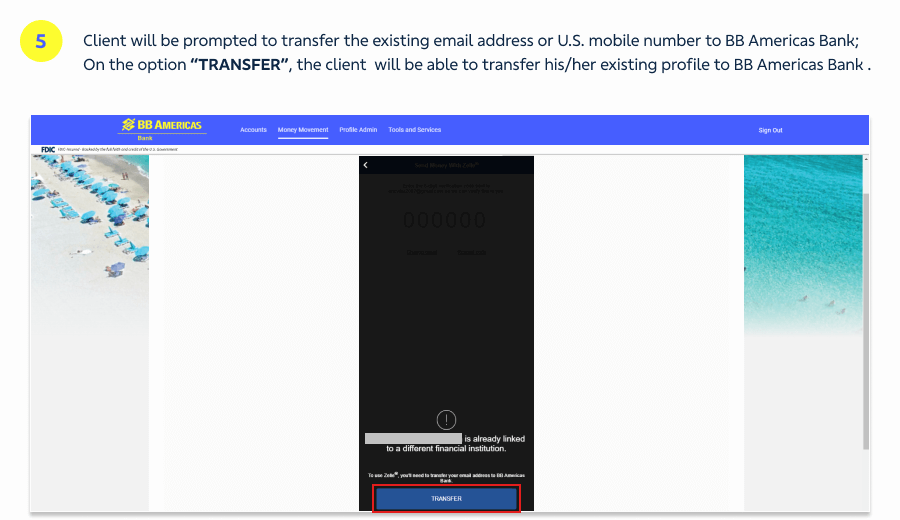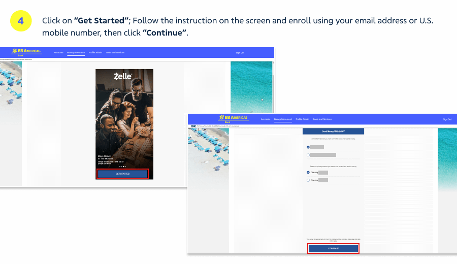 If you have already sent money with Zelle® at another U.S. Bank and would like to register Zelle® with BB Americas Bank, you will need to inform a new email address or U.S. mobile number, different from the one registered with Zelle® at the other bank.